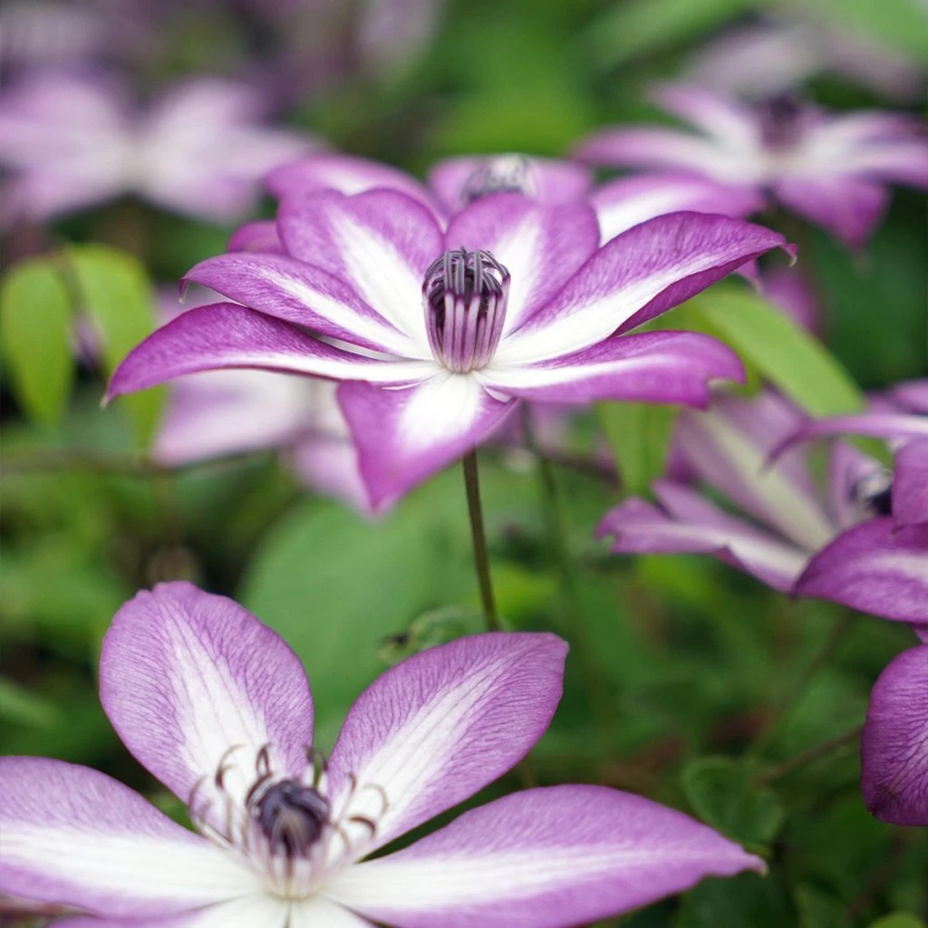 Plantez vos clématites en compagnie de vos rosiers grimpants pour prolonger la floraison de vos murs et pergolas jusqu’à la fin de l’été. Placez à côté de jolies vivaces comme les géraniums, des sauges nemorosa, phlox, qui fourniront à son pied l’ombre qu’il apprécie. C’est un genre riche et diversifié, il en existe de toutes les couleurs, de toutes les formes et de toutes les tailles. Profitez de cette diversité pour offrir à votre jardin un petit air romantique et bohème. ‘Lavallée n°1’ mérite une place non loin de la maison ou d’un passage. Elle adore également se faufiler dans les arbustes, et se comporte très bien dans un grand pot.